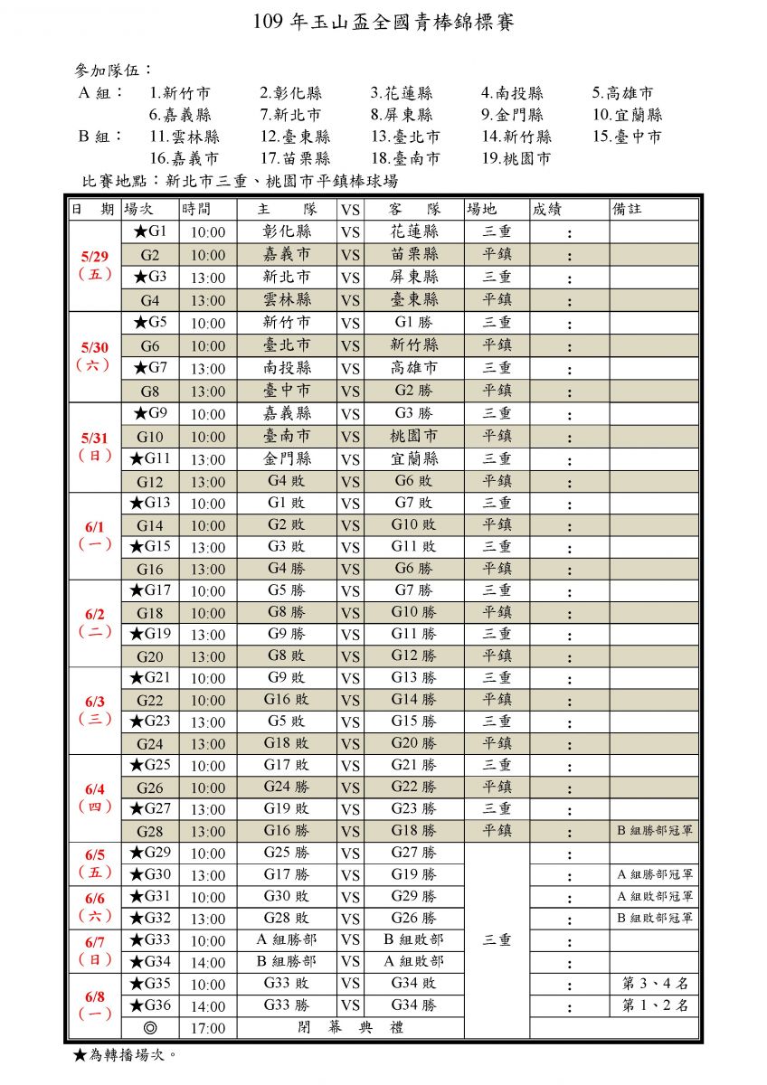109年玉山盃賽程表0528