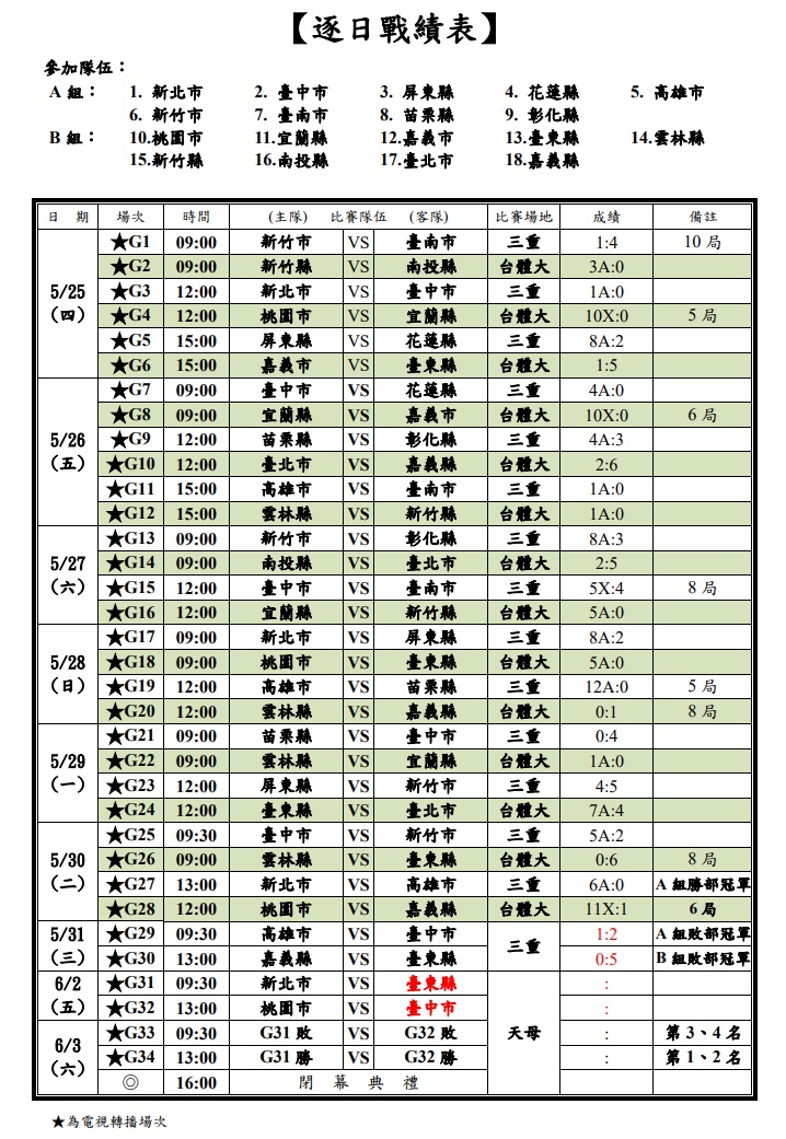 05/31 逐日戰績表
