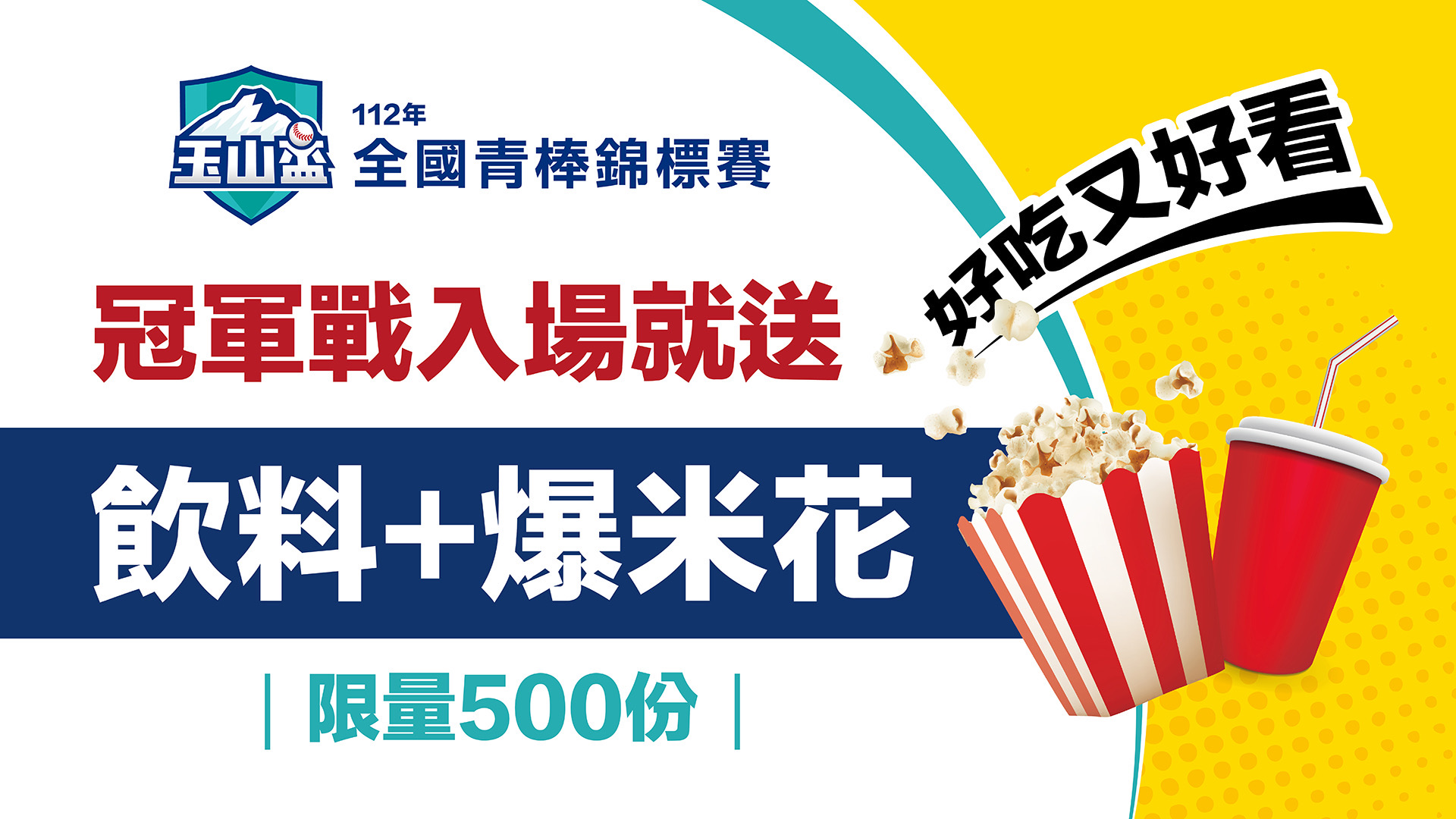 此外, 玉山銀行還加碼提供冠軍戰先到場的500位觀眾,可以獲得飲料及爆米花一份,數量有限,送完為止。