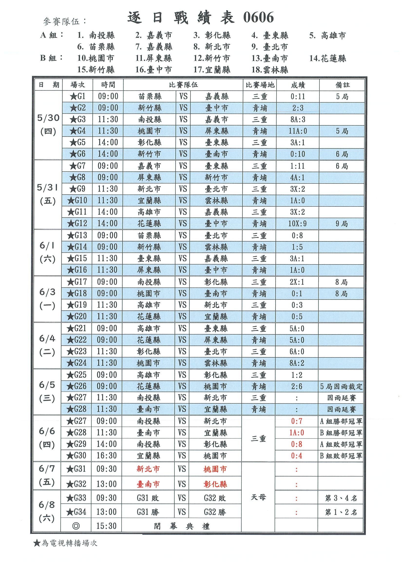 0606逐日戰績表