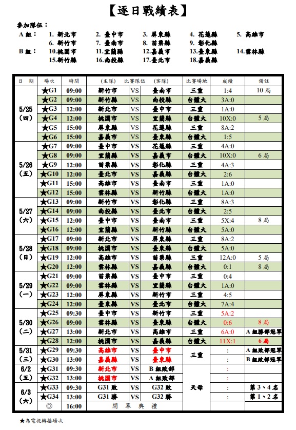 05/30 逐日戰績表