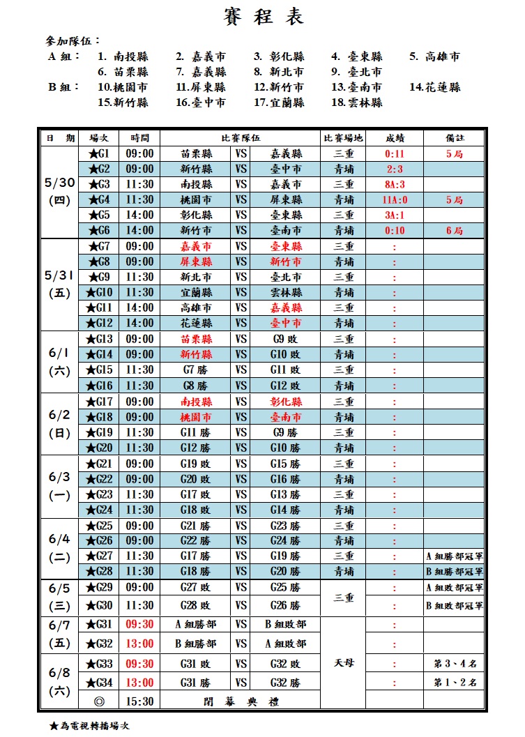 05/30 逐日戰績表
